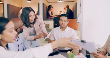 Planning, meeting and teamwork with business people in restaurant for strategy, project management and idea. Goal, collaboration and innovation with employee in coffee shop for vision and deal