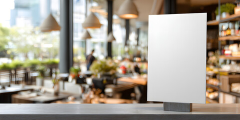 White blank space card on restaurant table background horizontal composition