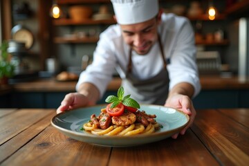 Restaurant manager holds a sticker with Food Hygiene rating 5 from The United Kingdom Food Standards Agency