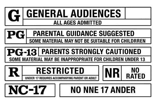 Movie rating labels set with parental guidance and restricted categories, Transparent Background