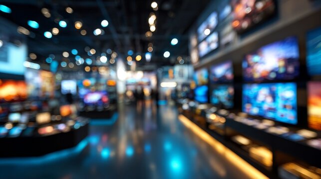 Vibrant Background of an Electronics Retail Store with Glowing Displays and Modern Atmosphere