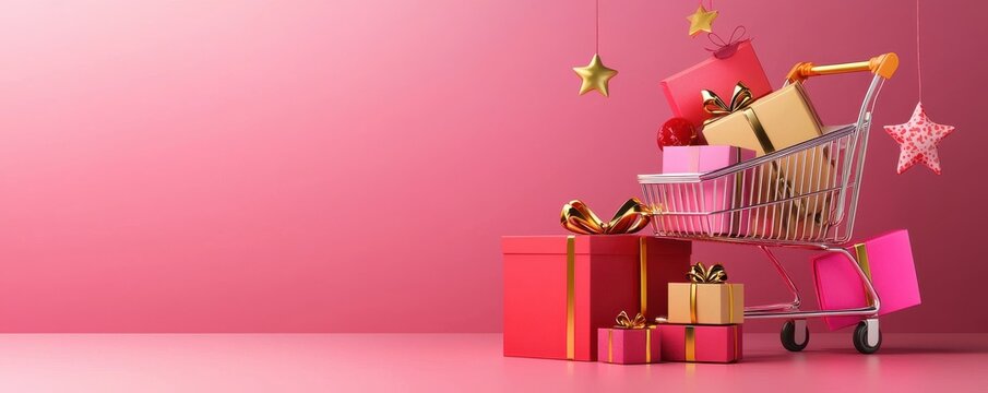 Celebration of shopping frenzy with gift boxes and deals