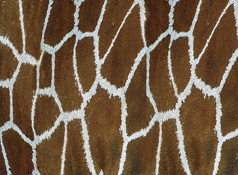 Close-up of Giraffe fur, filling the frame with a reticulated pattern of interlaced lines forming an abstract net or web.