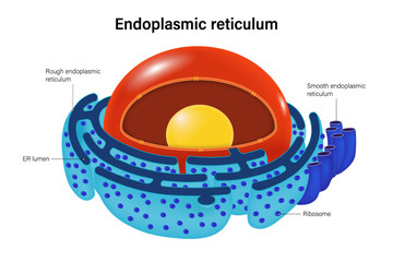 Endoplasmic Reticulum structure vector. Rough endoplasmic reticulum and Smooth endoplasmic reticulum.