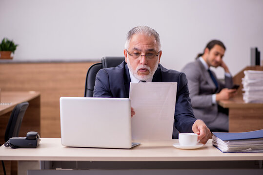 Old boss and young male assistant in the office