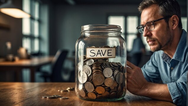 Pink piggy bank with eyeglasses and calculator, concept of savings and investments. Generative AI