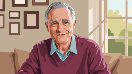 Smiling Senior Couple Posing Together  in  Studio: Elderly Man with Hat & Woman with Pearl Necklace Representing Retired Baby Boomers Enjoying Active Lifestyle,  Vintage Illustration for Family Health