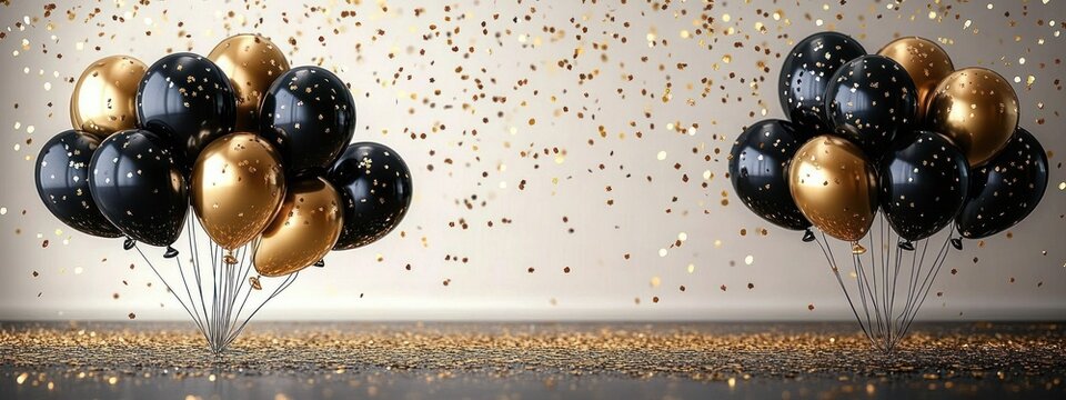 Birthday gold balloon happy card background black white party gift. Poster gold birthday elegant balloon anniversary design luxury premium template invite mockup christmas room rose ribbon silver up