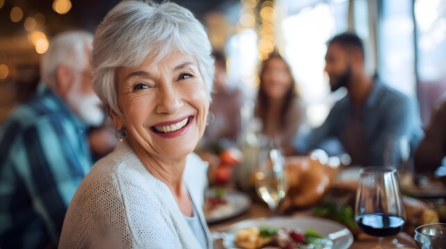A warm and joyful gathering of elderly family and friends celebrating a retirement milestone with a cozy dinner together in a comfortable home setting