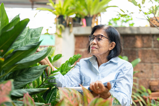An elderly senior man is intently reading a book with a magnifying glass at home, diligently taking notes on paper. He is focused on studying, learning, and managing important documents and paperwork.