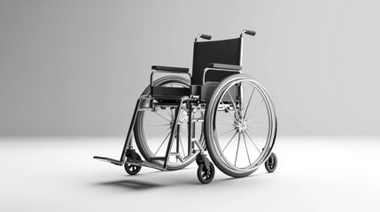 Realistic rendering of a wheelchair standing alone on a clean, white background, highlighting its structure and design