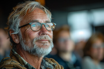 An elderly white man retiree with packed suitcases against a vibrant yellow background with copy space representing the increased travel opportunities often associated with retirement