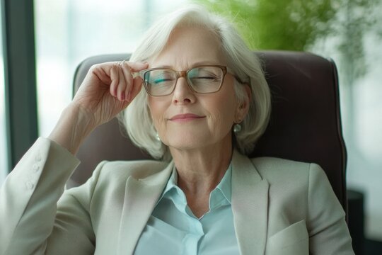 Joyful senior caucasian woman with silver hair floating in swimming pool wearing stylish blue orange sunglasses and floral swimsuit during summer day. Active aging, wellness and retirement lifestyle