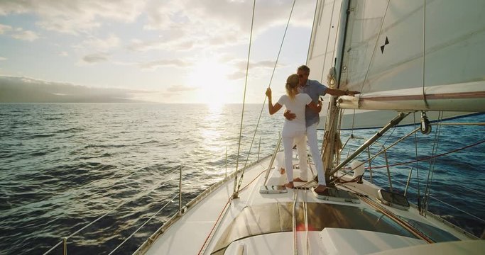 Retired middle aged couple sailing into the sunset