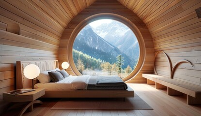 Stunning mountain top view with a serene circular platform amidst lush tropical foliage, perfect for travel and wellness retreat themes