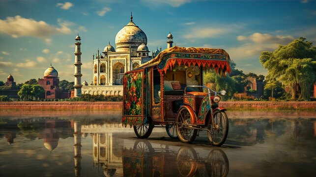 Rickshaw on old Indian town street, local atmosphere, Asian culture and travel concept