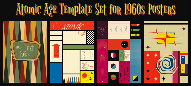 Modern graphic design posters featuring bold geometric shapes and vibrant colors