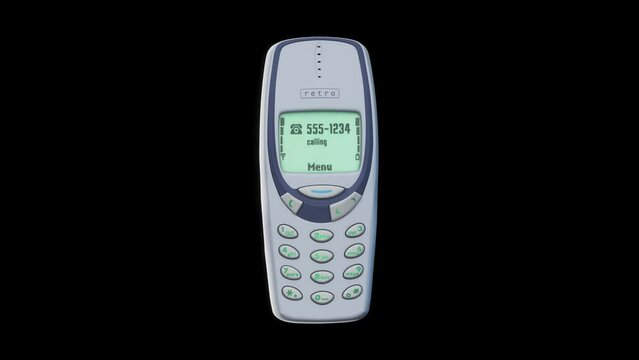 A vintage mobile phone from the 1990s isolated on a blue background.