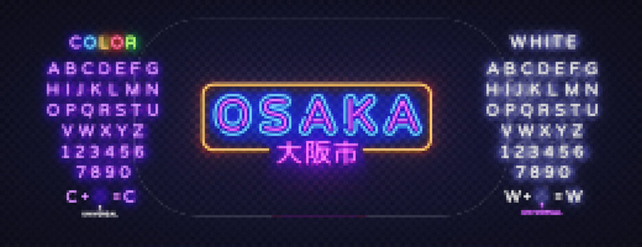 Osaka City neon sign vector design template. Translate Osaka. City in Japan. Light banner design element colorful modern design trend, night bright advertising, bright sign. Vector illustration