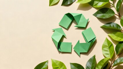 A circular diagram in 3D or flat design showing arrows connecting various elements like recycling bins, factories, product shelves, and consumers, symbolizing waste minimization and reuse