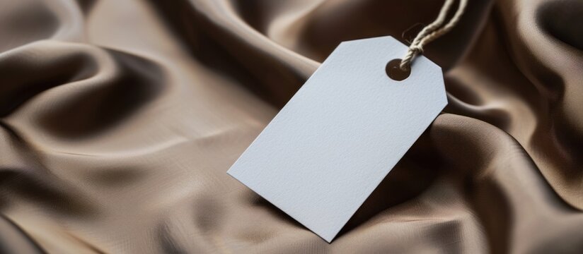 Blank White Price Tag Label with Red Border on Crumpled Brown Paper