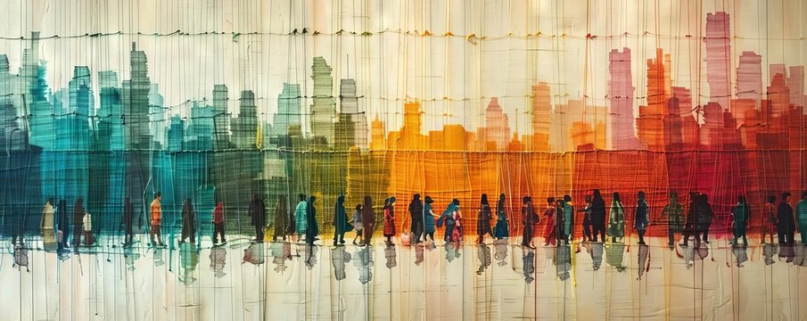 A creative twist on traditional demographics, showing a tapestry woven with threads of different thicknesses to represent population scales