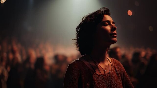 A snapshot of a worship leader with their arms outstretched, their eyes closed in deep reverence as they lead the group in a beautiful and soulstirring rendition of a worship song.