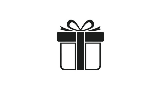 A stylized black and white gift box icon with a bow, representing presents, celebrations, and festive occasions.