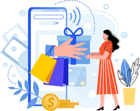 3d rendering of promotion sale with gifts and bag shoping , coupons, phone , on minimal blue gold background. flash sale , Mega sale special offer, discount sale podium .