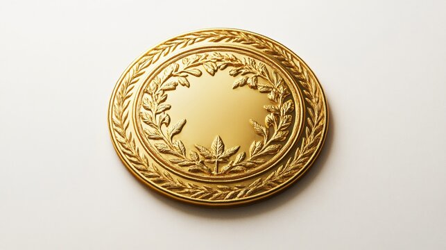 A highly detailed, gold medal with a laurel wreath design on a soft background, evoking themes of achievement, victory, and honor.