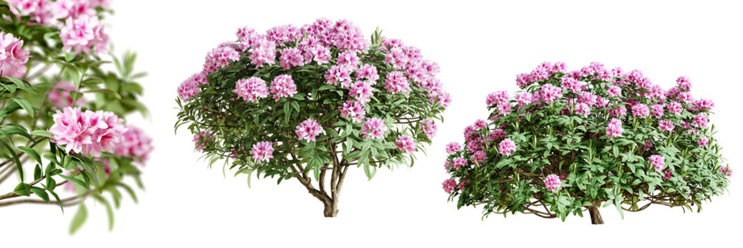 Rhododendron bushes in blossom isolated on transparent background. 3D render.