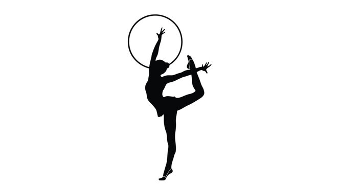 Silhouette of a rhythmic gymnast performing with a hoop, showcasing flexibility and balance