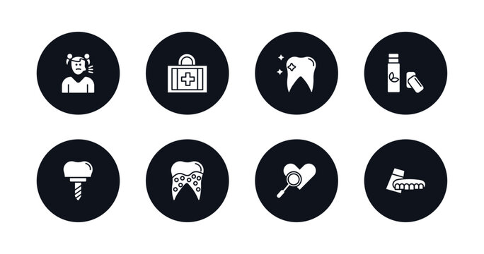 symbol for mobile filled icons set. filled icons such as sick girl, aid, tooth whitening, chewing gum, implant, plaque, check up, denture vector.