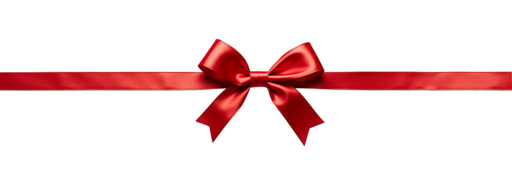 Close-up of a red ribbon with a large bow tied in the center  - Transparent background
