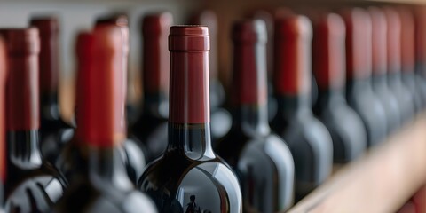 Exploring an Upscale Wine Cellar Filled with Various Red Wine Bottles. Concept Wine Tasting, Cellar Exploration, Red Wine Varieties, Wine Collecting, Upscale Winery