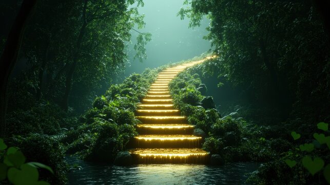 A path leads to a hidden waterfall that flows with liquid gold, offering a glimpse into a realm of fantastical riches and powerful magic.