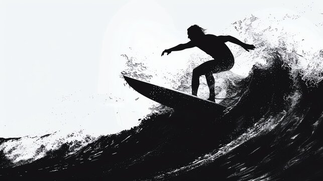 Riding Data Wave Silhouette of Person Surfing in Digital Ocean