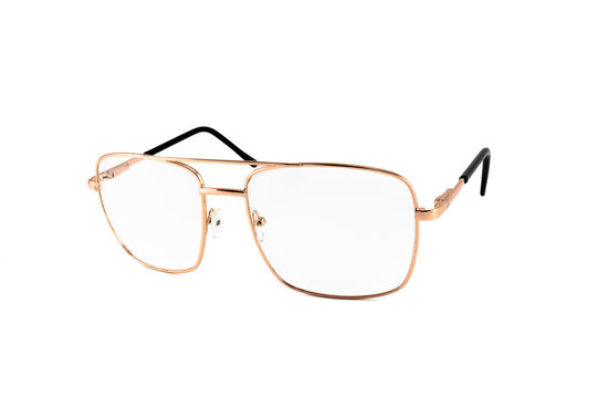 Gold rimmed pilot aviator reading sunglasses isolated white background, side view