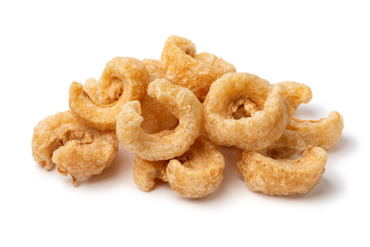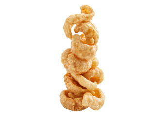 Pork snack, pork rind, pork scratching, pork crackling isolated on white background.