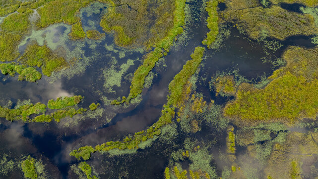 Aerial View of Serene Wetlands and Vegetation in BC, Canada