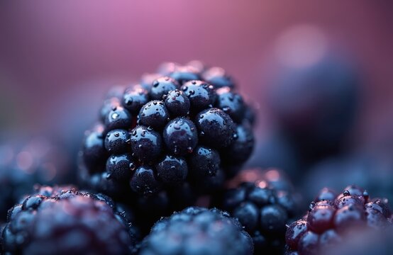 Close-up of ripe blackberries. Fresh juicy summer berries with water drops. Healthy organic dessert food, ingredient for cakes, pies. Vitamin snack for diet, antioxidant rich fruit. Healthy eating,