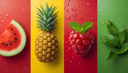 Collage of fresh fruits vegetables for healthy eating and wellness