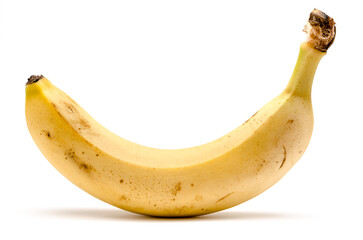 One single yellow ripe banana isolated on white background