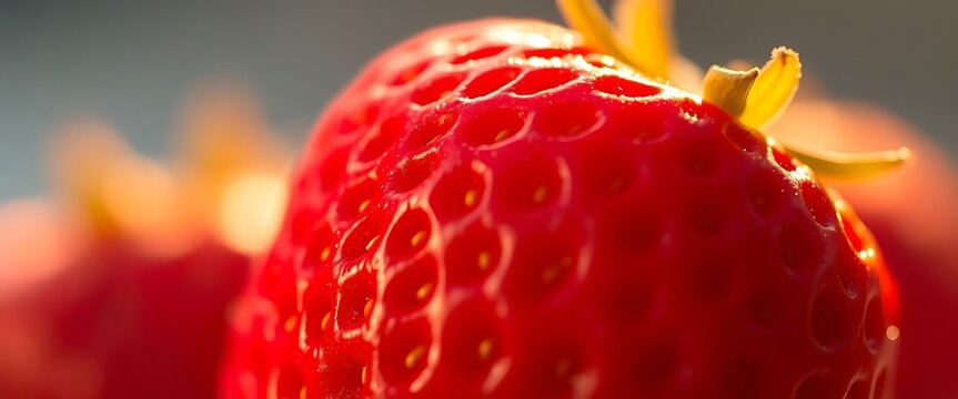 close up of a red strawberry with a blurry background