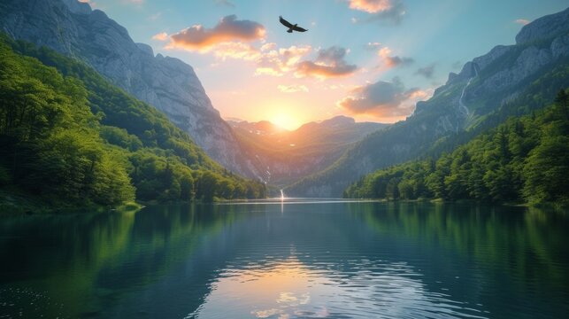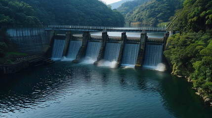The riverine ecosystem thrives as the hydroelectric dam generates clean, green energy, preserving natural beauty and biodiversity.