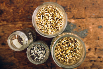 Jars with rivets on workbench