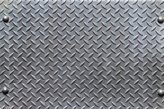 Closeup of a riveted with button-head rivets steel checkered plate as an industrial background
