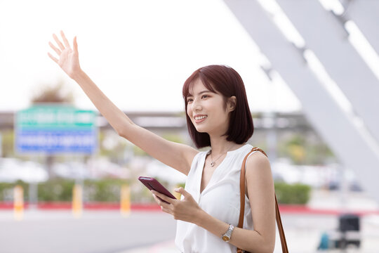 businesswoman hail a taxi