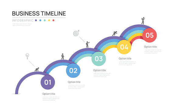 Business timeline infographic steps road map to success growth. with icons and graphic elements. Vector illustration.