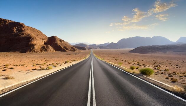 Endless asphalt road cutting through a desolate desert landscape, perfect for adventure seekers, road trip enthusiasts, and wanderers chasing freedom under the vast open sky.